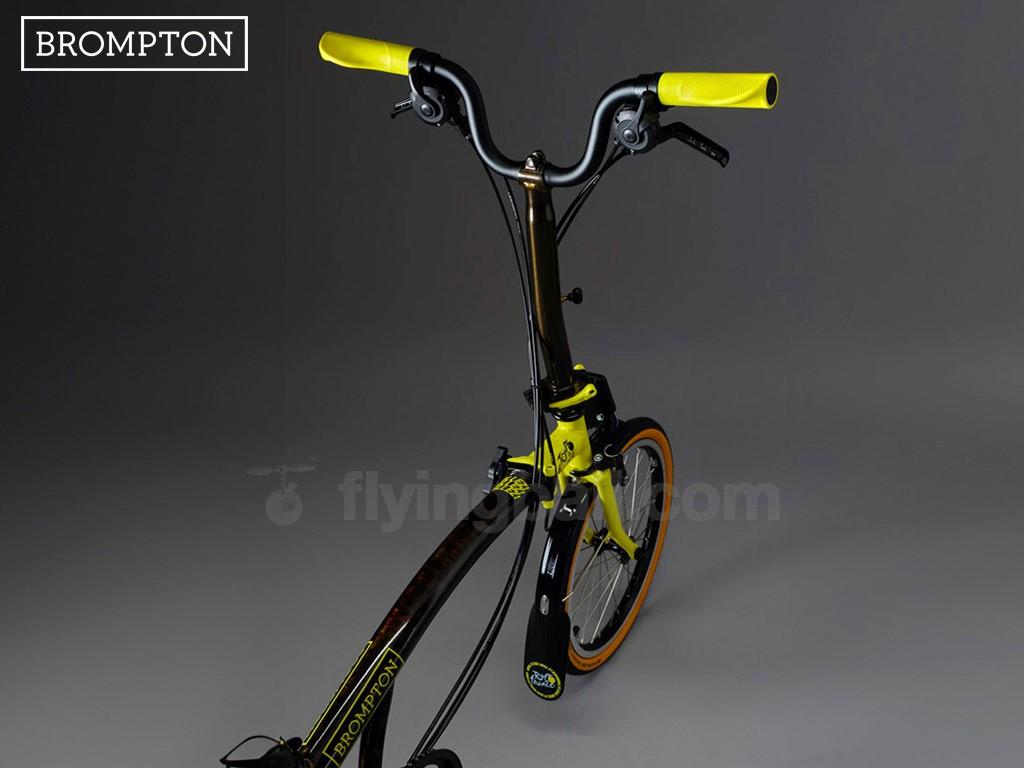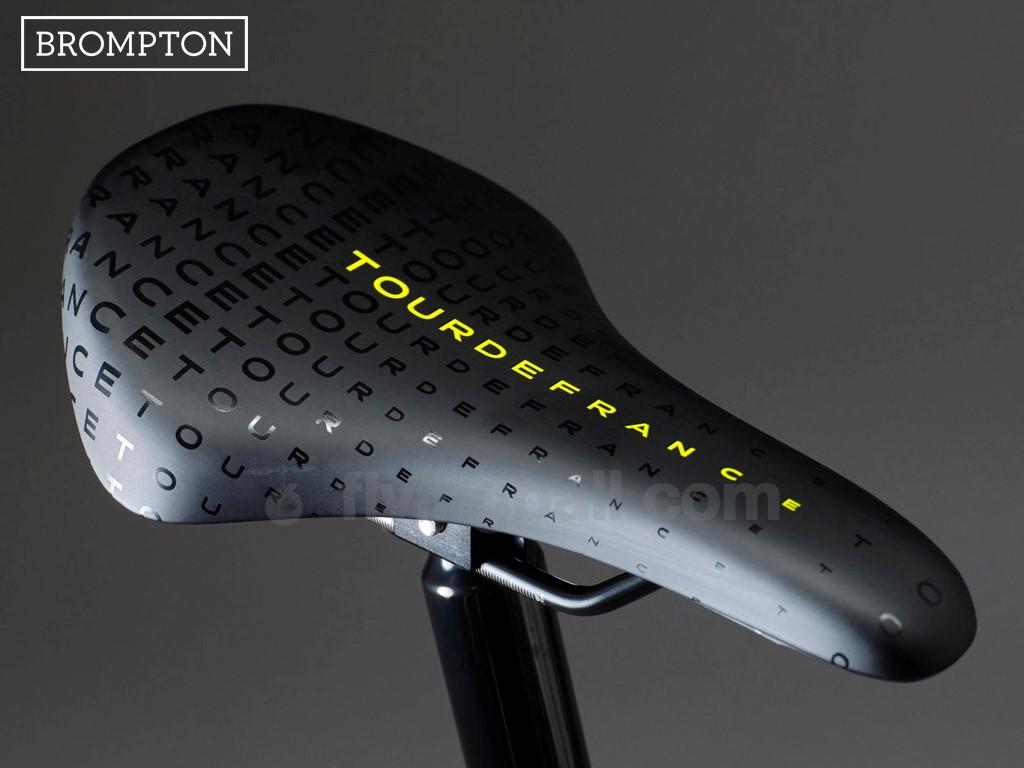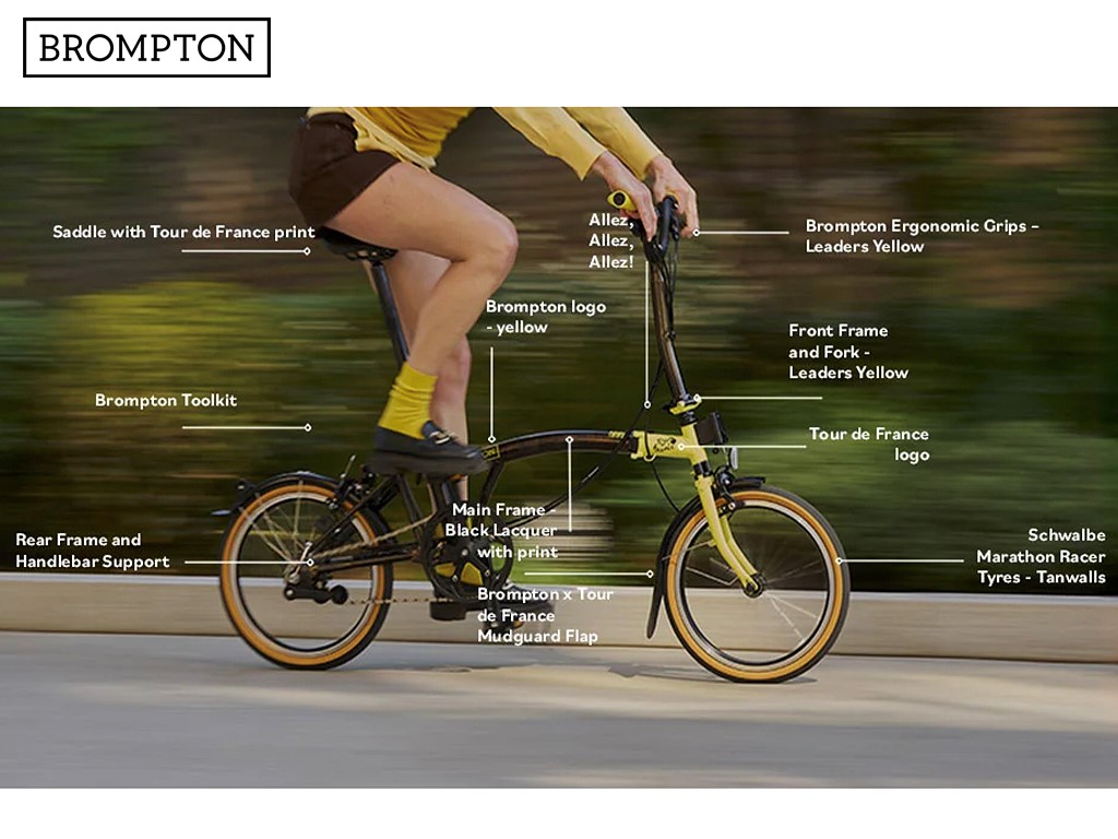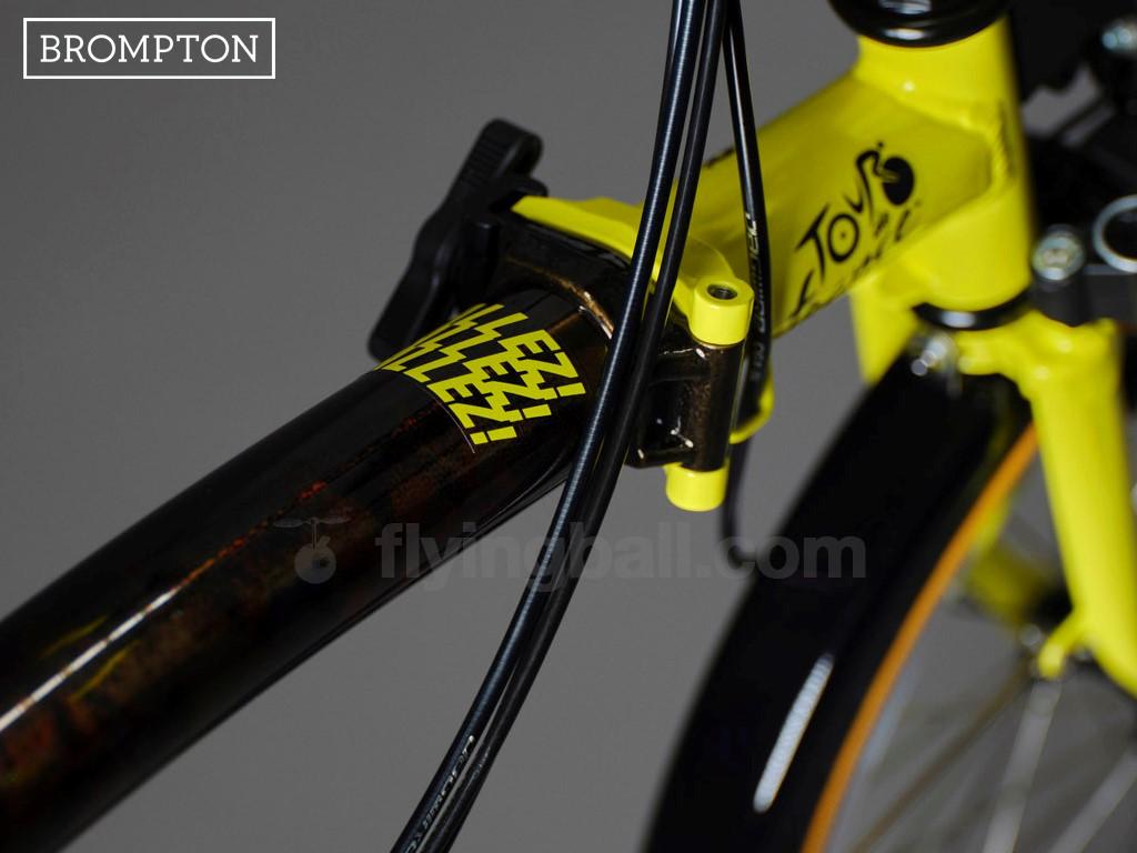 Specially designed decals shout out to Le Tour. Even the Brompton logo is in yellow.