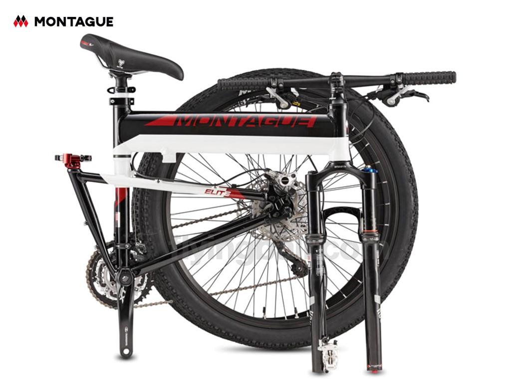Larger 27.5-inch wheels roll over any obstacle while a full Shimano XT drivetrain, Shimano XT hydraulic disc brakes, and Rockshox Recon suspension provide performance never before seen from a folding bike. Built upon the heritage of Montague’s Swiss Military® folding bikes, the Elite takes the mountain line to new heights.