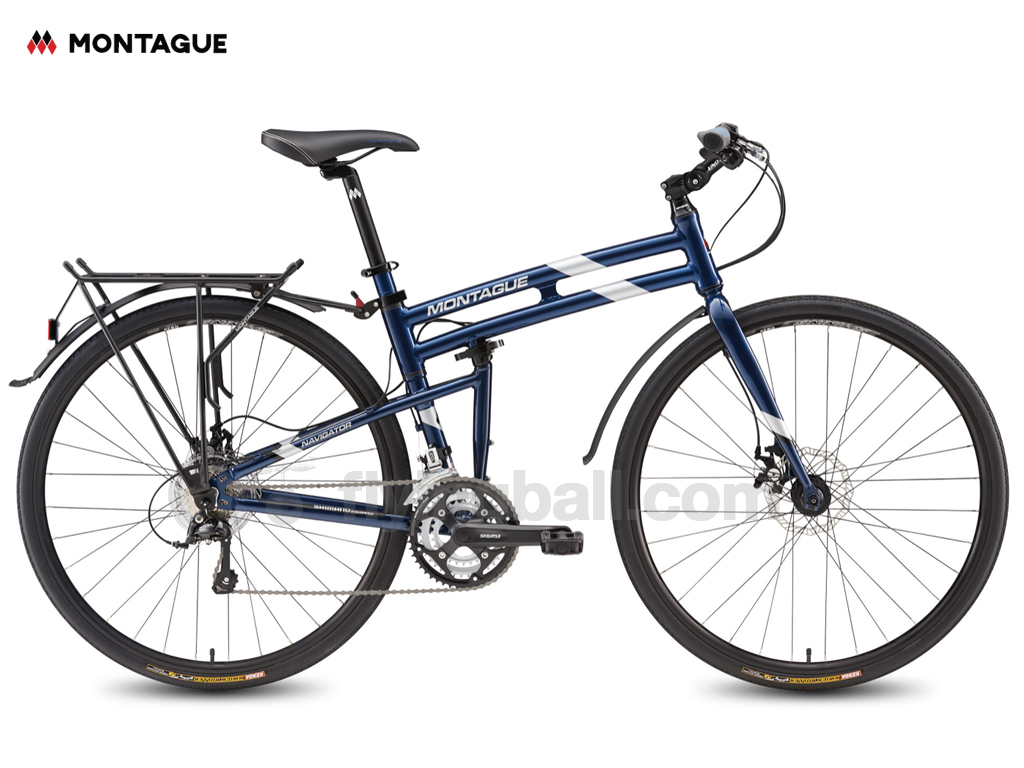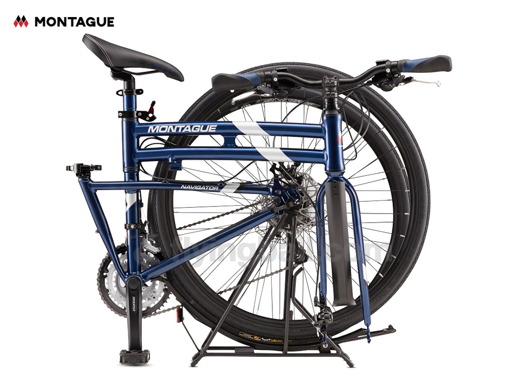 The Navigator is a multi-use folding bike with standard 700c wheels and all the bells and whistles. Knobby 35mm tires, 27 speeds, and disc brakes has it at home on paved or un-paved roads.