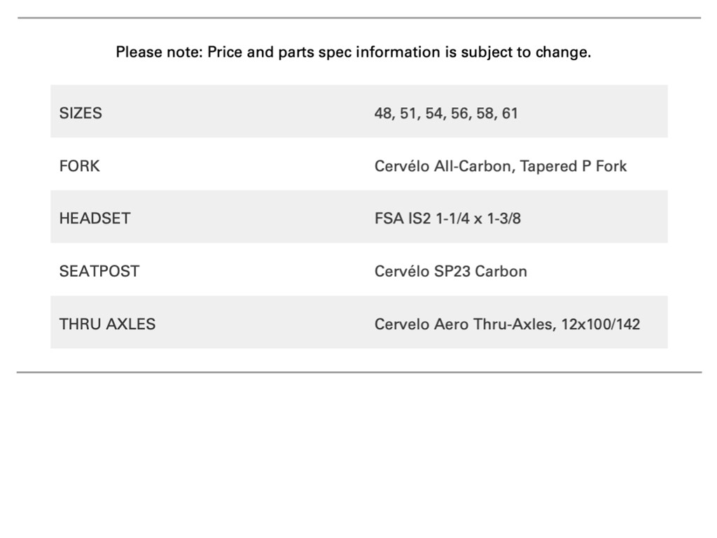 CERVÉLO 2025 P-SERIES TIME TRIAL & TRIATHLON FRAME SET