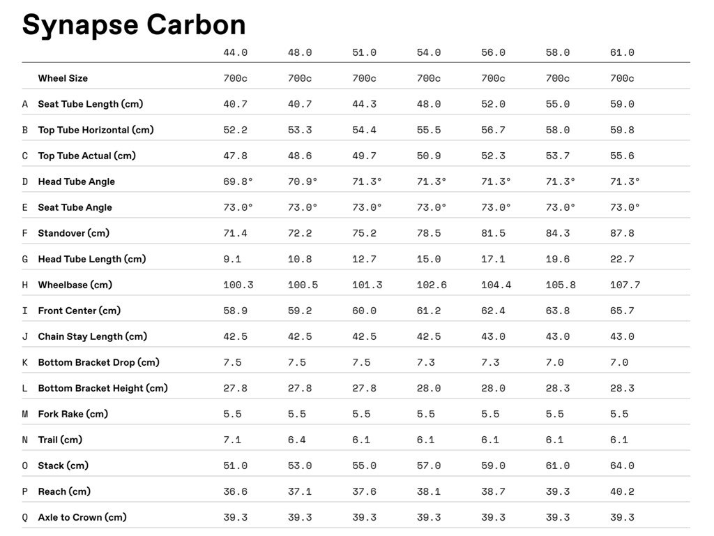 A great fit and feel makes for a great ride. And with our Proportional Response Construction, every rider gets that as standard. From the carbon layup through to the geometry, everything on Synapse has been tuned and tested by frame size. So that your bike works in harmony with you to give the best possible ride for you and your height.