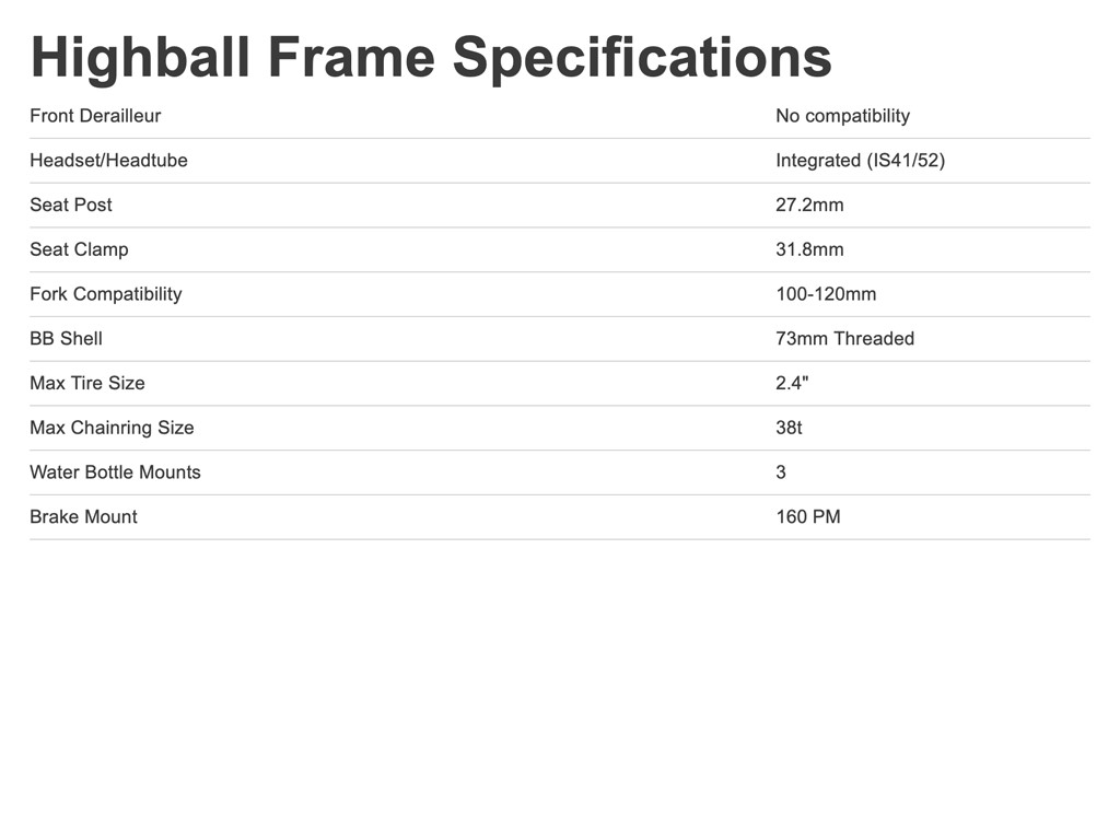 When the trail (or the competetion) calls for the direct drive efficiency that only a hardtail can offer, the Highball is the choice. This is a modern take on the simple machine that many still choose in order to put battery acid in their thighs and fire in their lungs when conquering a challenge. Whether you’re chasing medals, personal demons, or your riding buddies, this is a hardtail you’ll be happy to log long hours upon.
