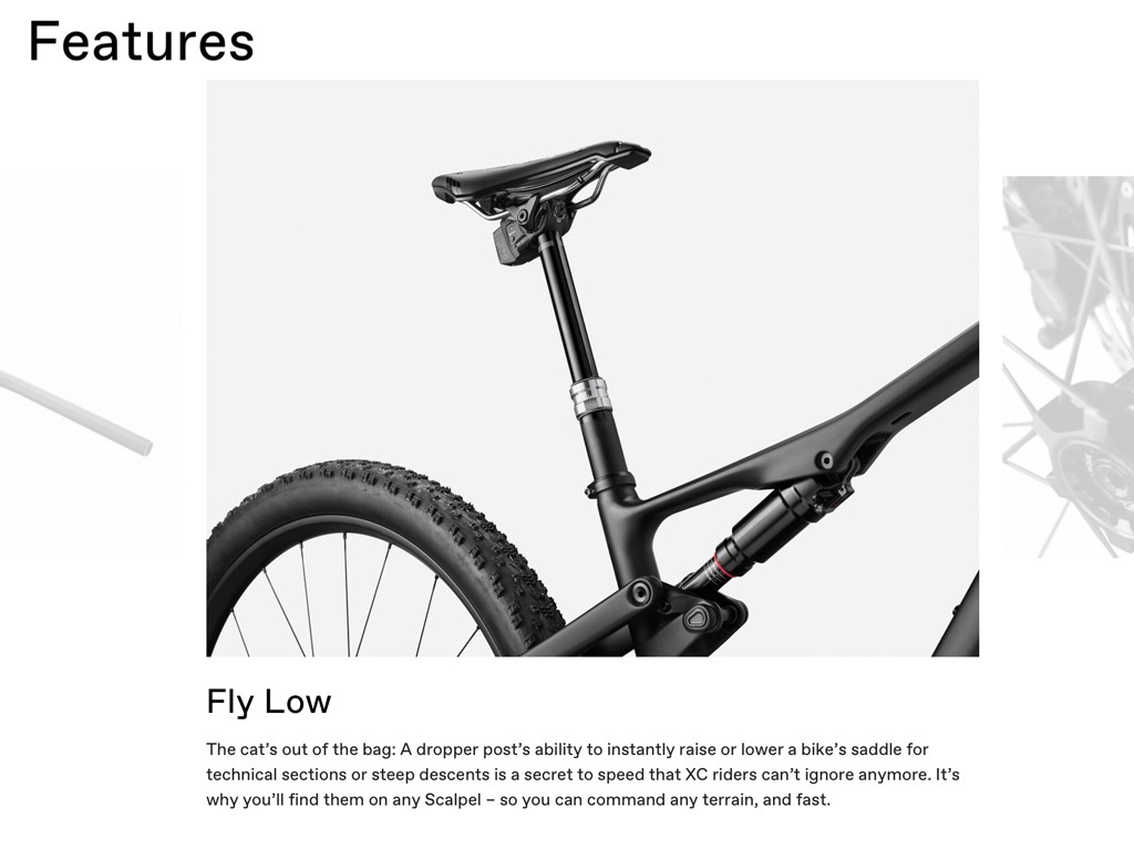 This ain’t no fashion statement. This is pure, purposeful design. Every element of the Scalpel’s form is driven by function above all – kinematics, weight, stiffness, and capability. Features drive the shape, instead of the shape constraining the features. And fast looks good.