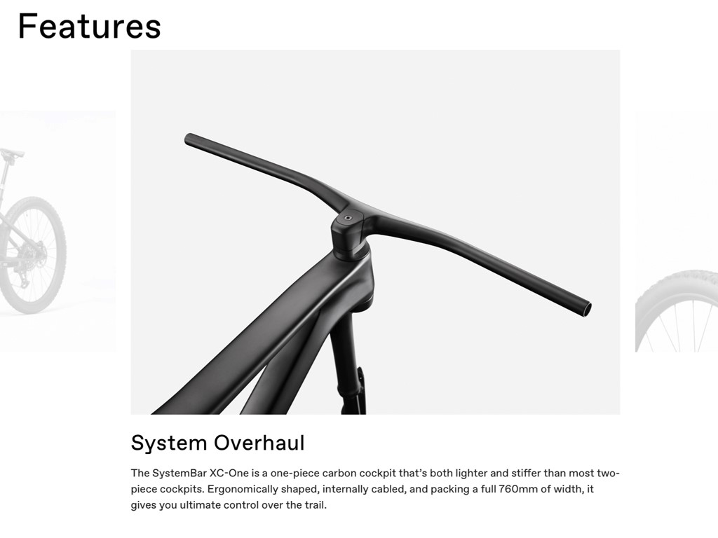 - Sleek SystemBar XC-One integrated carbon handlebar and stem