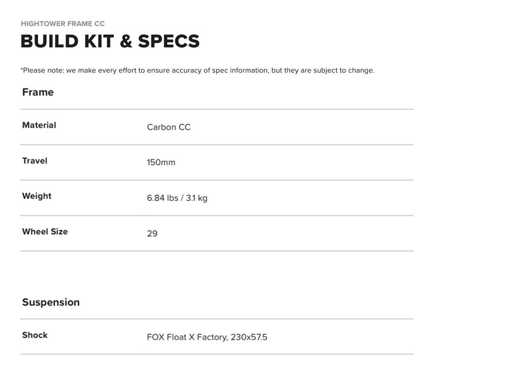 SANTA CRUZ 2025 HIGHTOWER 4 CC 29” MOUNTAIN FRAME