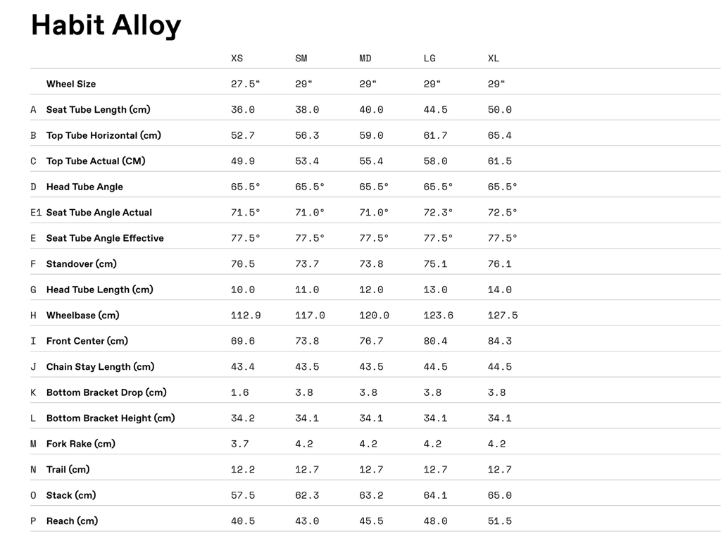 The Habit geometry is uniquely size specific. With our Proportional Response Design, everything from the suspension layout to, the geometry —even the length of the chain stays — is completely customized by size. Performance built, just for you.