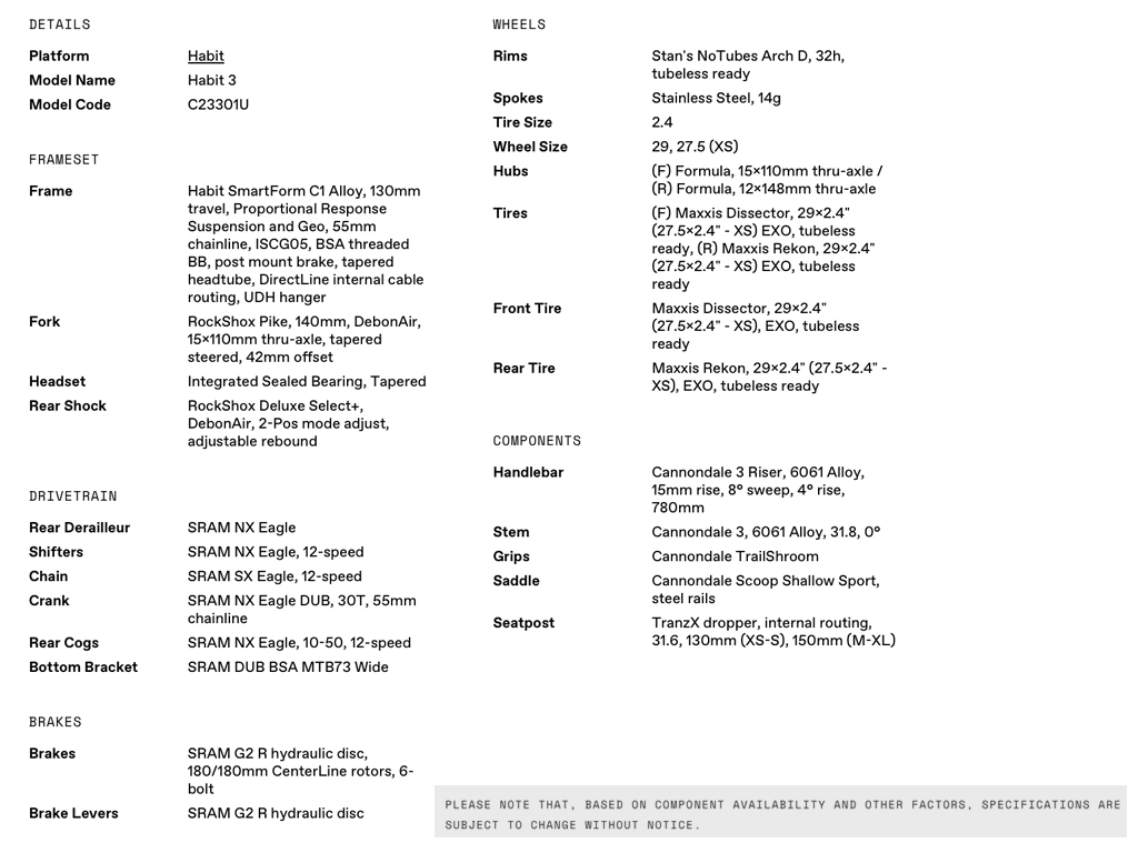 CANNONDALE 2023 HABIT 3 MOUNTAIN BIKE