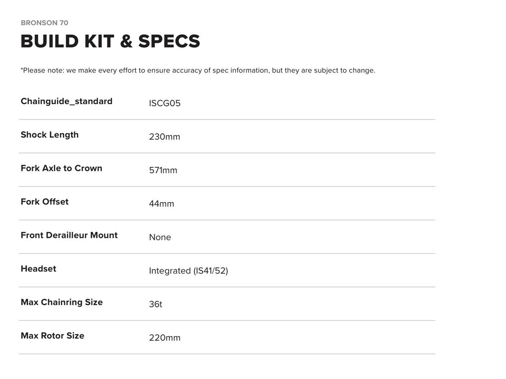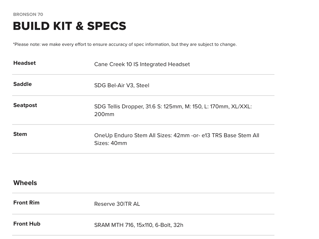 Base model with same tires and big rotors as all Bronsons. SRAM 70 cable actuated T-Type Transmission.