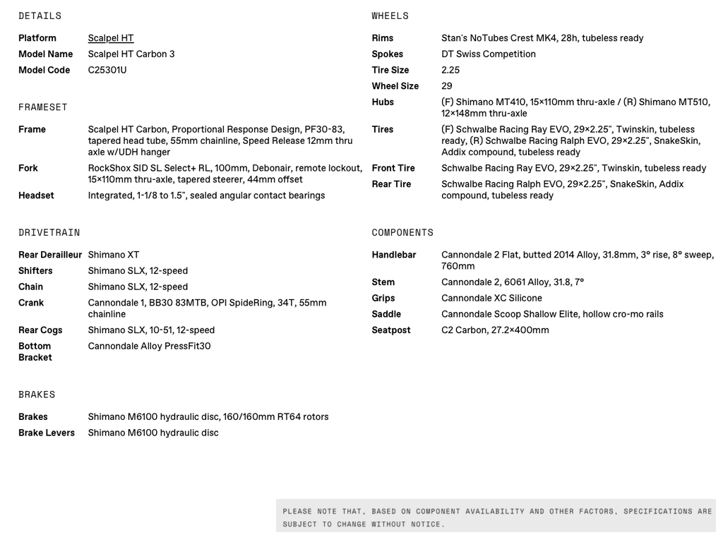 CANNONDALE 2022 29U SCALPEL HT CRB 3 MOUNTAIN BIKE