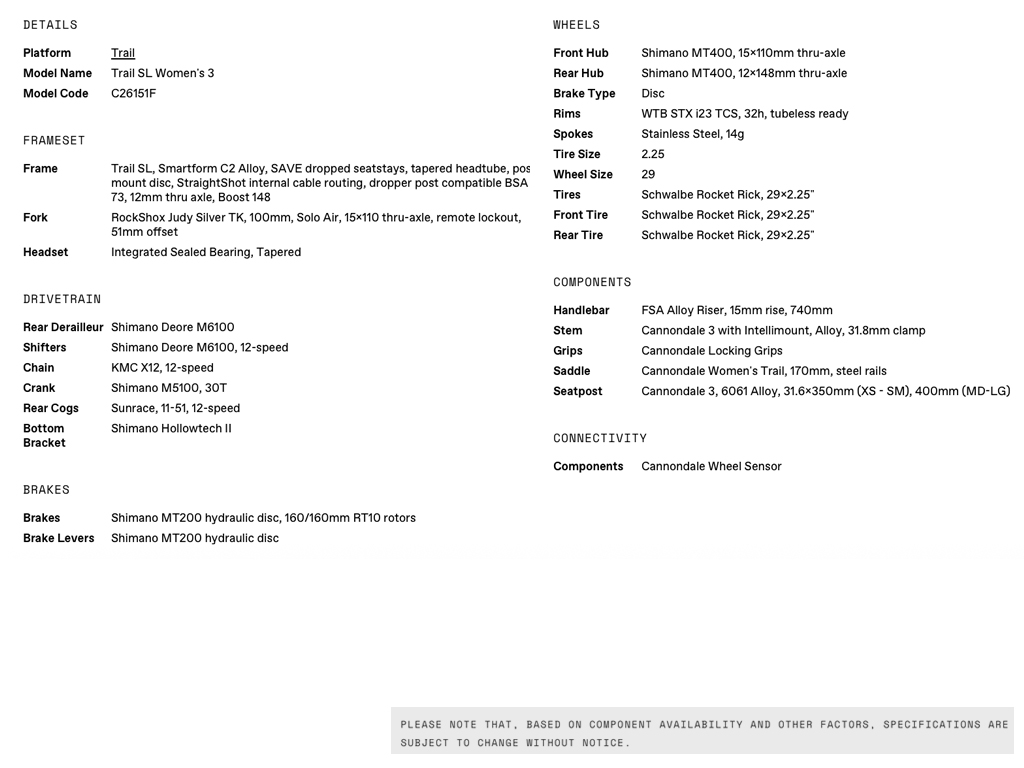 CANNONDALE 2024 29F TRAIL SL 3 WOMEN MOUNTAIN BIKE