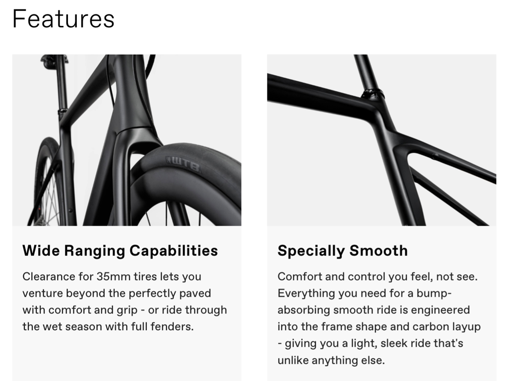 Lightweight carbon construction. Subtle aerodynamic shaping of the frame and fork. Size-specific design for perfectly tuned stiffness. It all adds up to a machine that loves to fly.