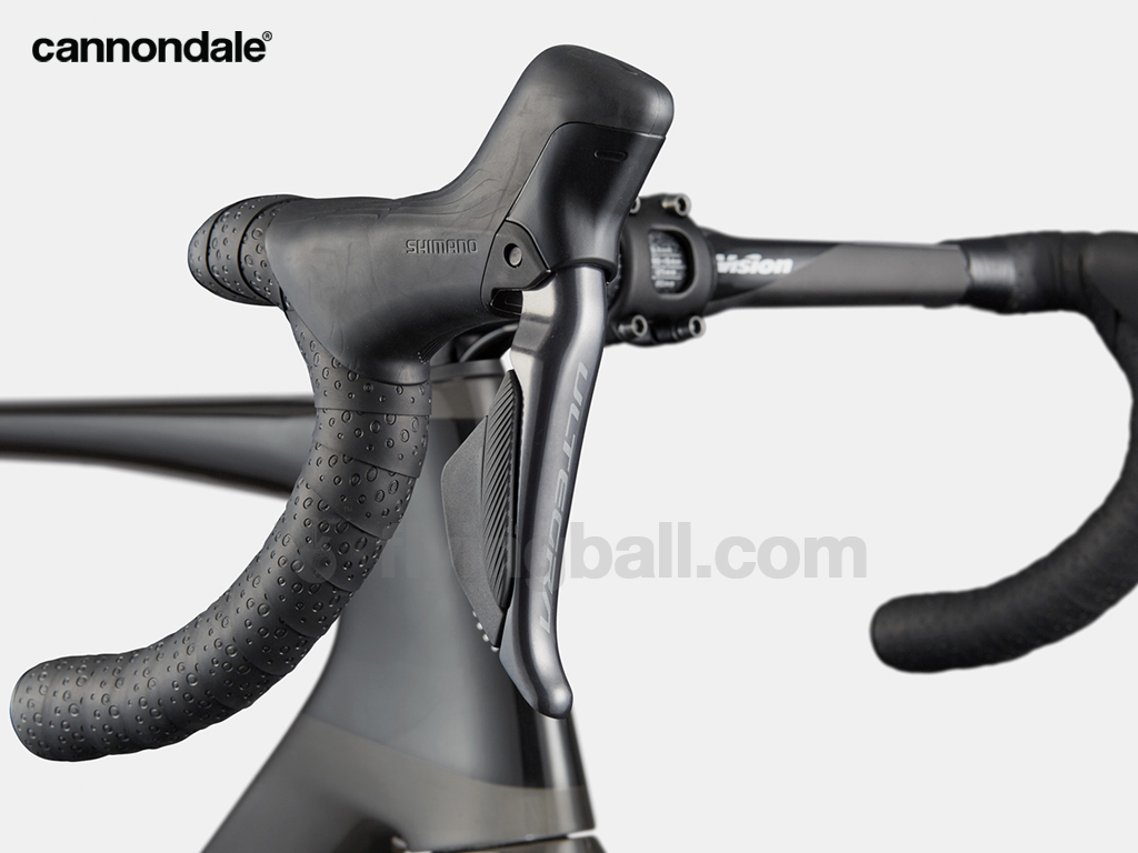 Optimized speed for full-gas racing. The superlight Gen 5 carbon frame rolls on DT Swiss ERC LOG 45 carbon wheels with DT Swiss 370 hubs. Shimano’s Ultegra Di2 handles shifting with electronic precision. Vision Trimax Carbon Aero bars and Cannondale C1 Conceal stem shape a low, efficient front end, while Ultegra hydraulic discs stay predictable when pace compresses and corners come in hot. Built to make the surge stick.