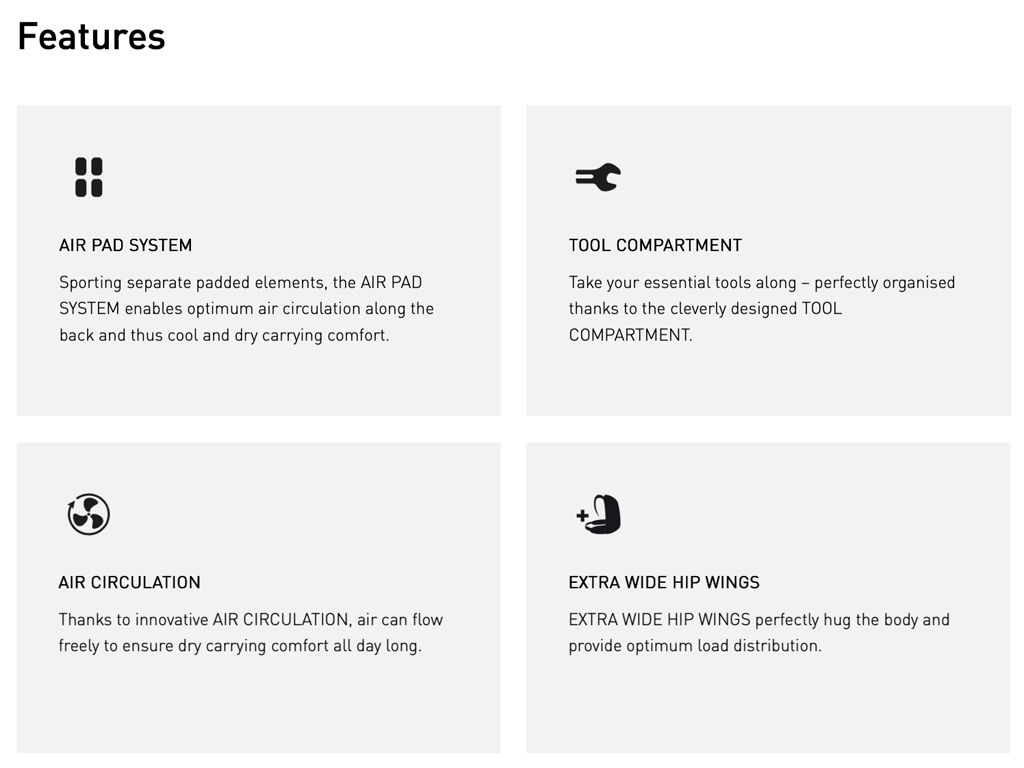 - Internal TOOL COMPARTMENT with organiser functionality