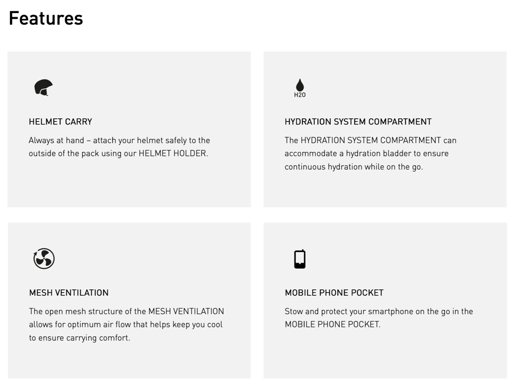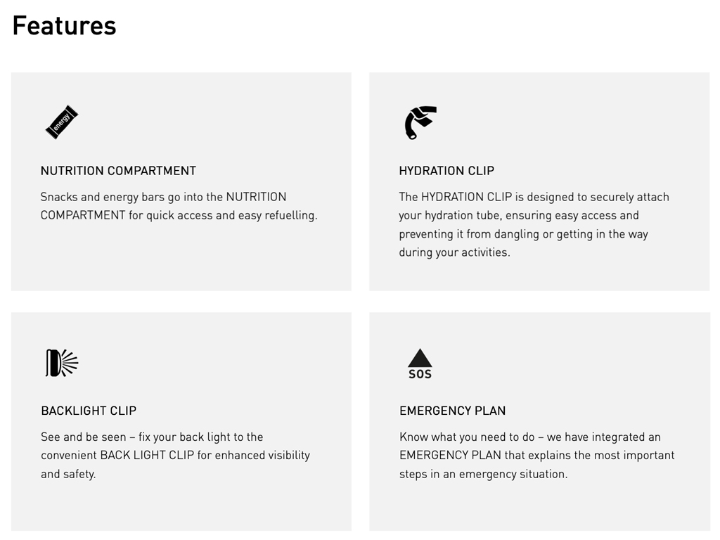 - HYDRATION SYSTEM COMPARTMENT up to 3L