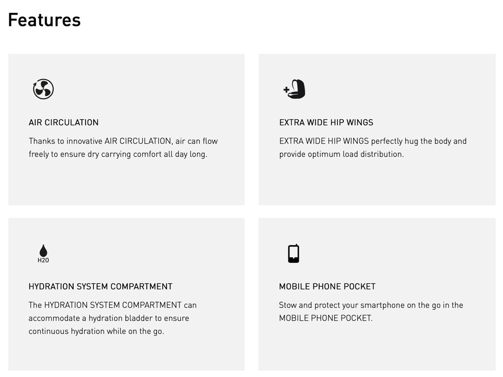 - HYDRATION SYSTEM COMPARTMENT up to 1.5L