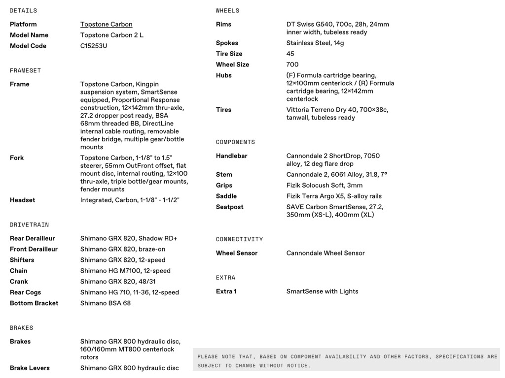CANNONDALE 2024 700U TOPSTONE CRB 2L GRAVEL BIKE
