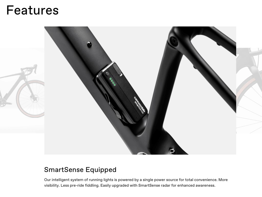 On every ride, SmartSense has your back. SmartSense’s system of intelligent lights (and optional rear-facing radar) increases your visibility out on the open road and makes it easy to ride smart.