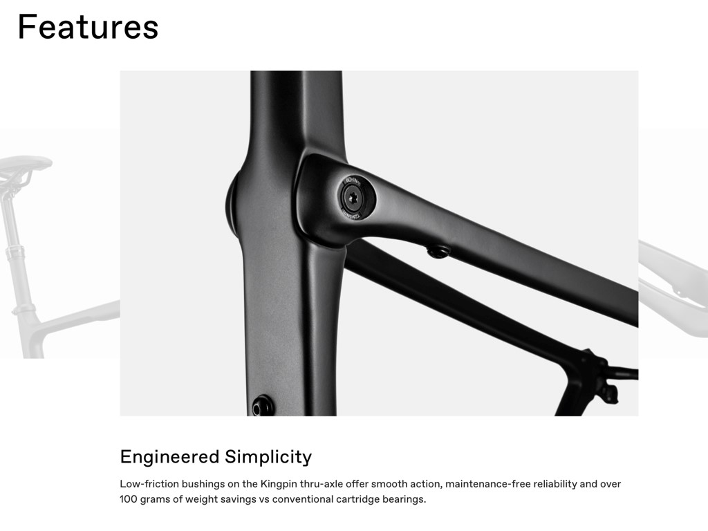 Delivering a smooth ride without the added weight and complexity of a shock and links, Kingpin is our answer for the most demanding gravel riders. Whether you need more comfort to go long, more traction to push beyond or more give to take on the tech - Kingpin is the maintenance-free, lightweight answer to your prayers.