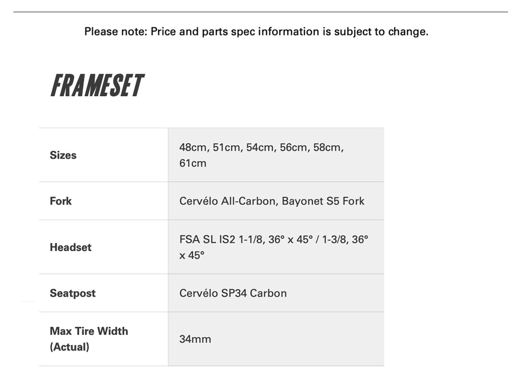 CERVÉLO 2026 S5 ROAD FRAME SET