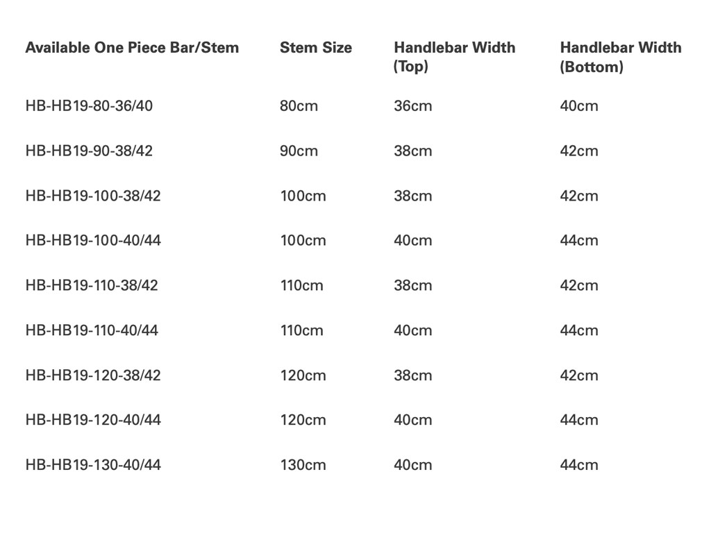 HB19 uses our “Plus-Four” concept, meaning the dimension at the hoods is 4cm narrower than in the drops (e.g. 38cm/42cm). This approach helps riders maintain a more aero body position while their hands are on the hoods, and provides stability in the drops for descending and sprinting. All bar sizes are UCI-legal, even in light of the most recent regulations change.