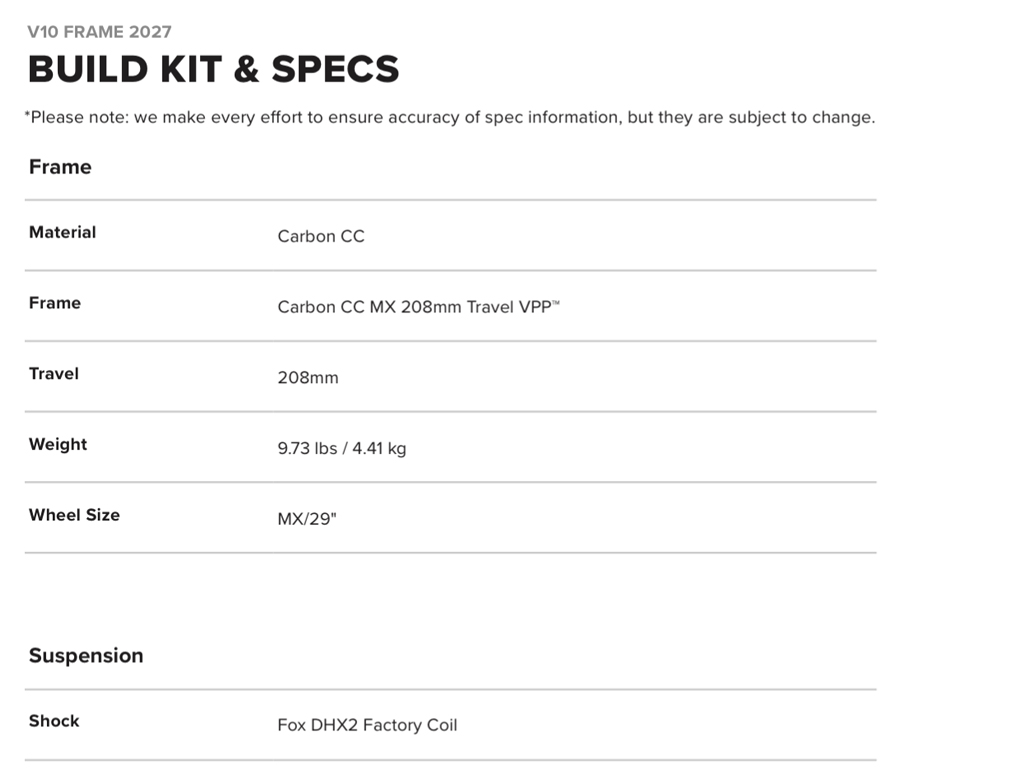 SANTA CRUZ 2027 V10 8 CC MOUNTAIN FRAME