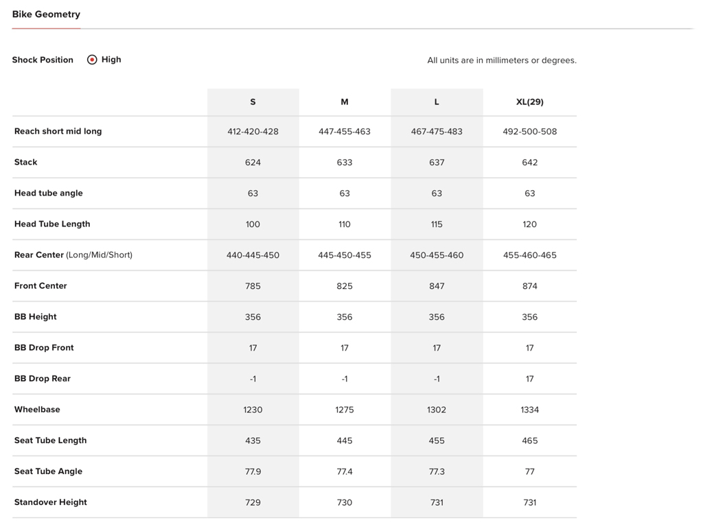 Wheel size: MX (Sizes S/M/L), 29" (Size XL)
