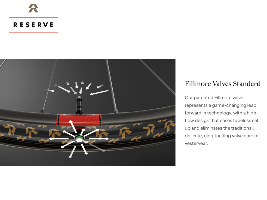 Our patented Fillmore valve represents a game-changing leap forward in technology, with a high-flow design that eases tubeless set up and eliminates the traditional, delicate, clog-inciting valve core of yesteryear.
