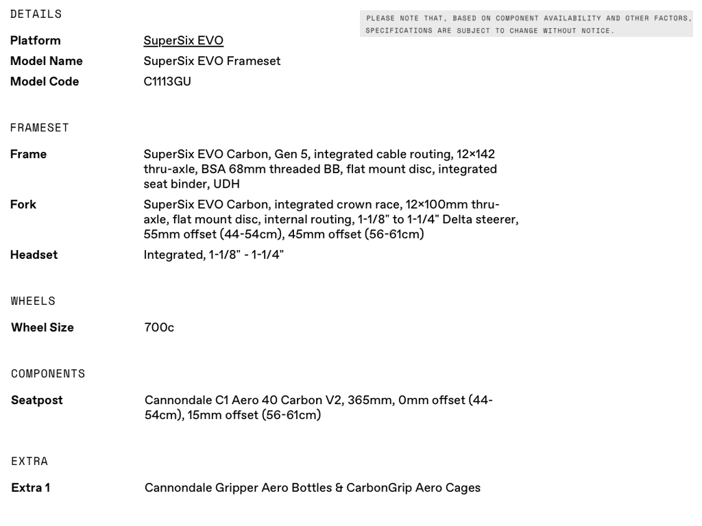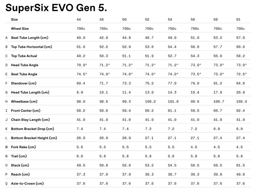 - SuperSix EVO Gen 5 frame - Lightweight carbon construction delivers an incredibly smooth, efficient, and responsive ride - backed by our lifetime warranty