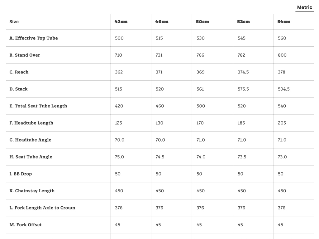 - Shortened seat tube and slightly sloped top tube for improved stand-over clearance, plus increased stack height for a more upright and comfortable riding position on those long hauls